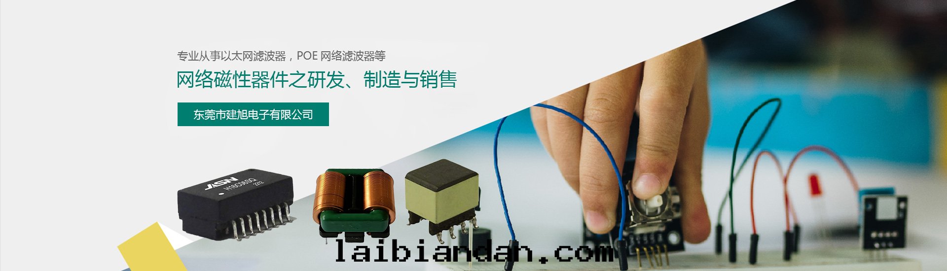 東(dōng)莞市建旭電(diàn)子有(yǒu)限公(gōng)司位(wèi)于(yú)交通(tòng)便利的(de)東(dōng)莞市常平鎮(zhèn),是(shì)一(yī)家專業從事(shì)以(yǐ)太网(wǎng)濾波(bō)器,新(xīn)能(néng)源磁性(xìng)器件(jiàn)、通(tòng)訊及(jí)電(diàn)源變(biàn)壓器和(hé)電(diàn)感(gǎn)器等网(wǎng)絡磁性(xìng)器件(jiàn)之(zhī)研發(fà)、制造與(yǔ)銷售和(hé)汽車電(diàn)子變(biàn)壓器的(de)生(shēng)産、銷售。産品暢銷國(guó)內(nèi)外(wài),遠(yuǎn)銷歐美、東(dōng)南(nán)亞等市场(chǎng),并为(wèi)國(guó)內(nèi)外(wài)客户提(tí)供OEM/ODM服(fú)務(wù)。公(gōng)司産品齊全(quán),性(xìng)能(néng)穩定(dìng),性(xìng)价比高(gāo),深受廣大(dà)客戶好(hǎo)評。産品廣泛應(yìng)用(yòng)于(yú)网(wǎng)絡交换機(jī)、路(lù)由(yóu)器、機(jī)顶盒、數字(zì)電(diàn)視、監控設備、扩展(zhǎn)塢、智慧醫療、智能(néng)家居(jū)、光(guāng)伏逆變(biàn)器和(hé)充電(diàn)桩,并積极(jí)發(fà)展(zhǎn)物(wù)聯网(wǎng)相關(guān)應(yìng)用(yòng)。